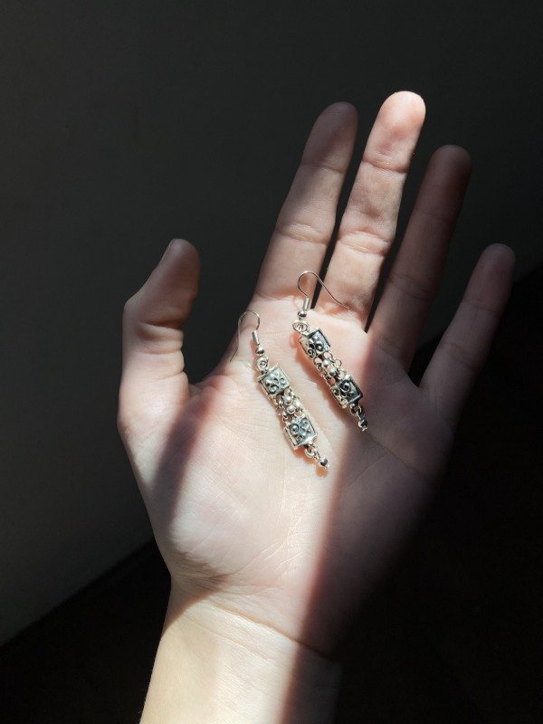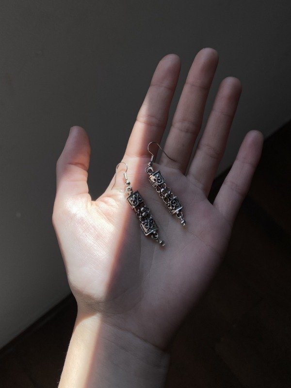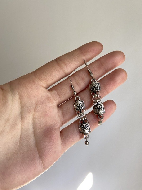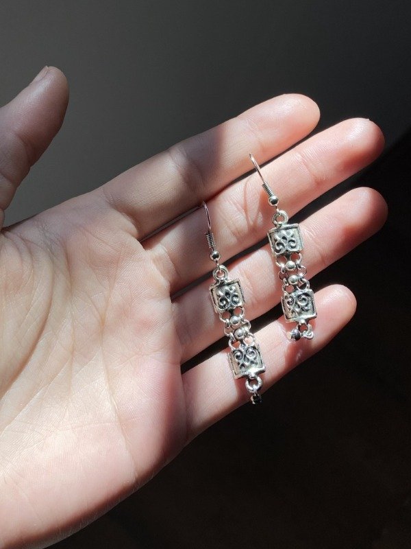 Par de aritos con dijes y cadenas, tienen lindo movimiento y miden 4,5 cm.