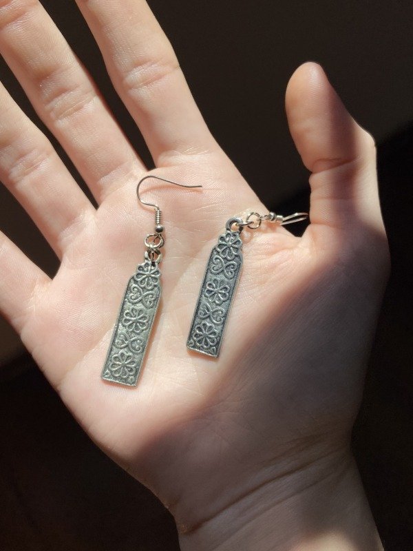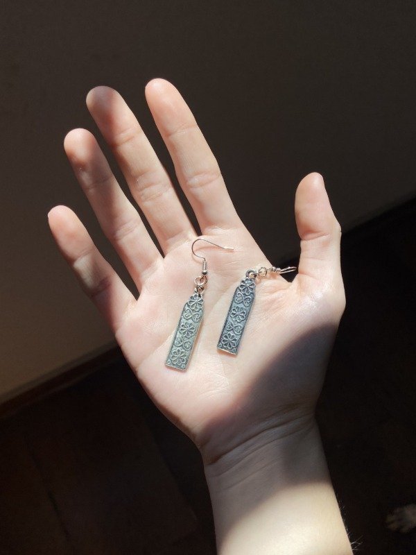 Par de aritos con relieve de florcitas, son livianitos y muy lindos! No recomiendo mojarlos.