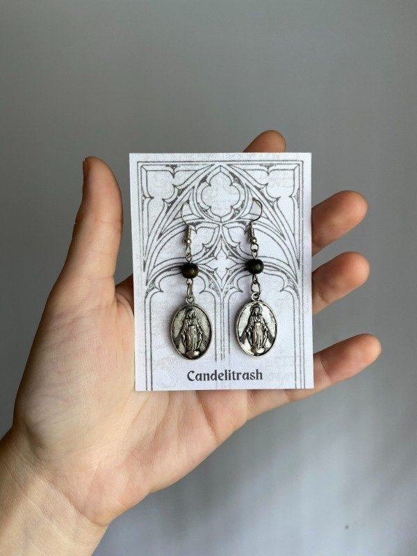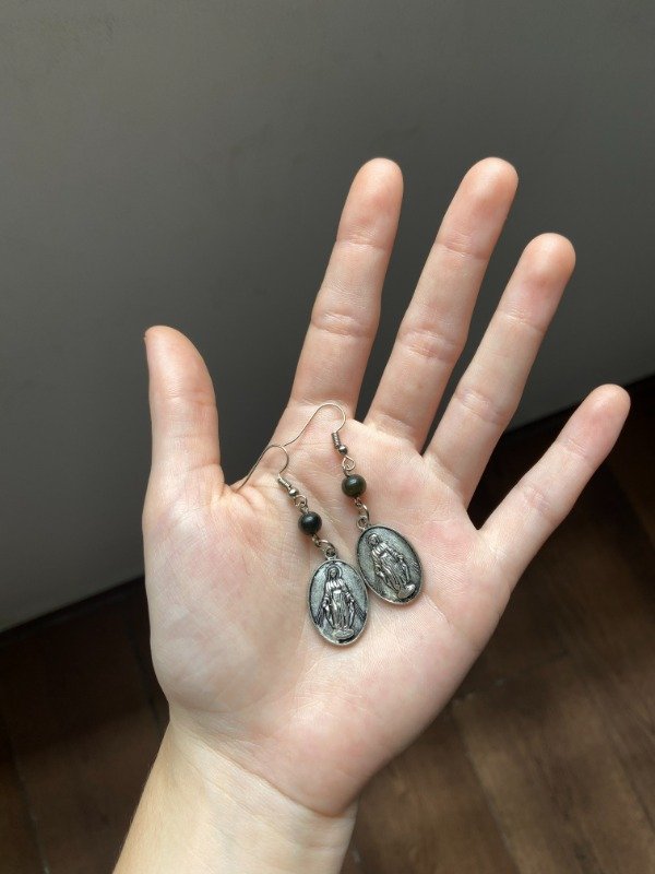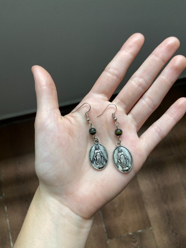 Par de aritos con medallas religiosas