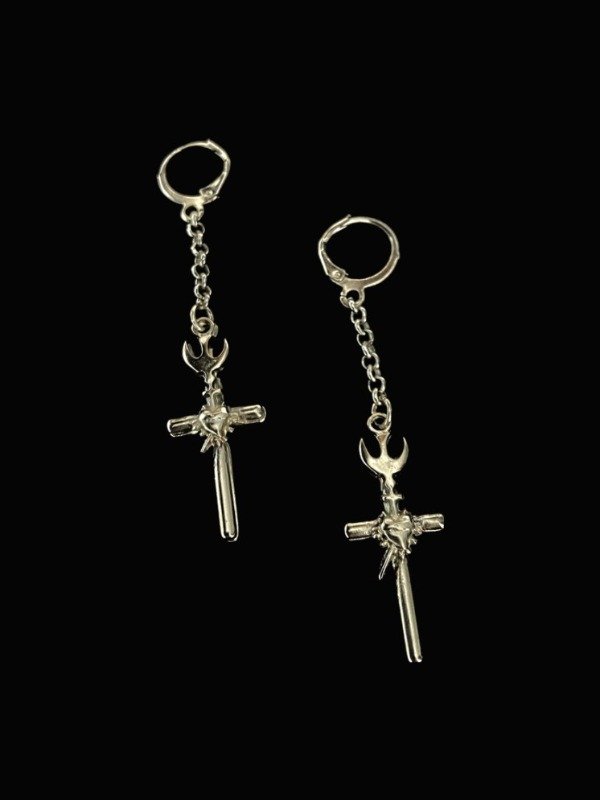 Par de aros con cadenita y dijes de cruz, con gancho de níquel. Ambos tipos de ganchos son del mismo material!