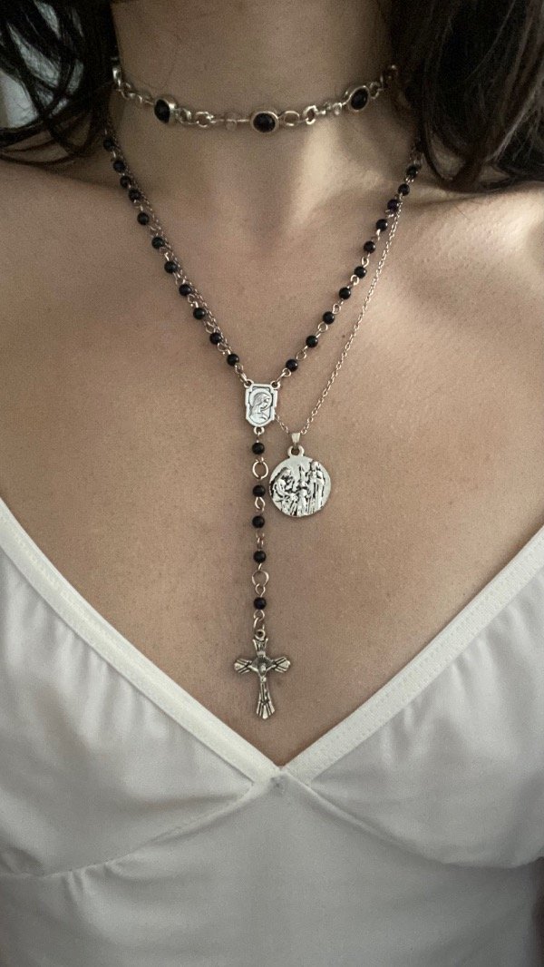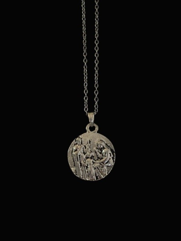Cadena de acero con un dije de medallita.