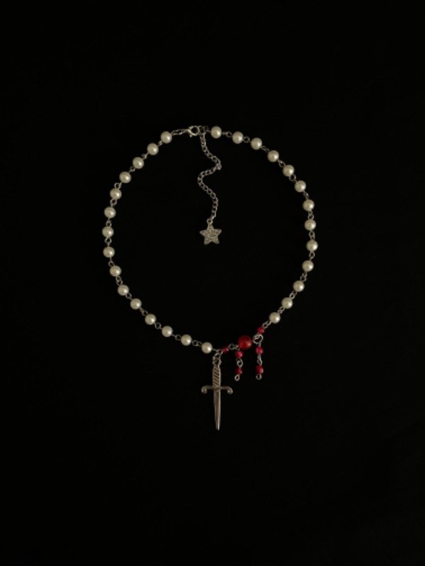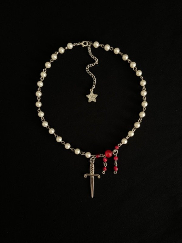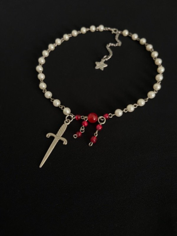 Collar con un dije de espada y gotitas de sangre relindo de 42 cm aprox de largo.