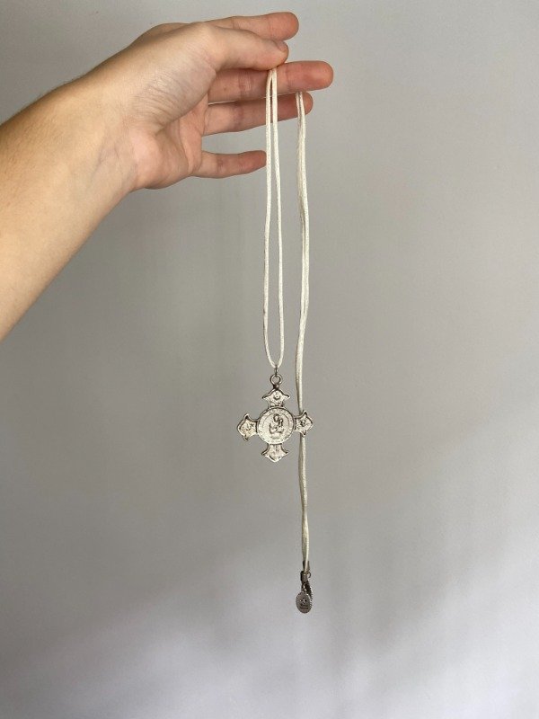 tienen una cruz grandecita y unas pequeñas medallas a los extremos.