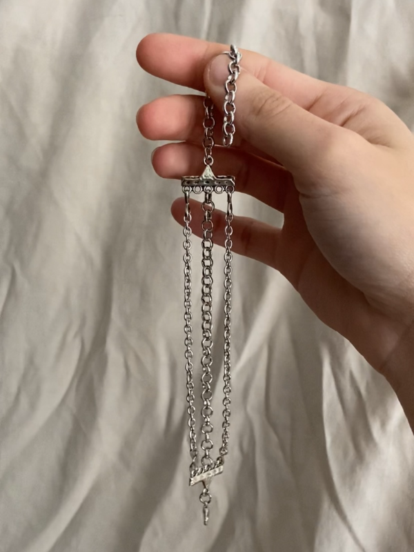 Pulsera con perchitas a los costados y cadenas a lo largo