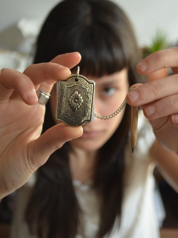 Libreta chiquita con dos tapas metálicas y un lapicito para escribir tus más grandes deseos. 20 hojitas.