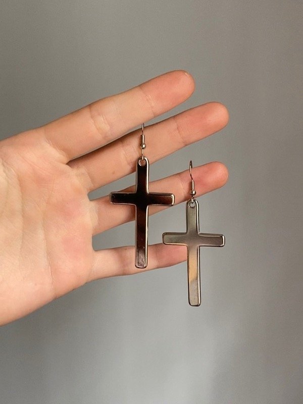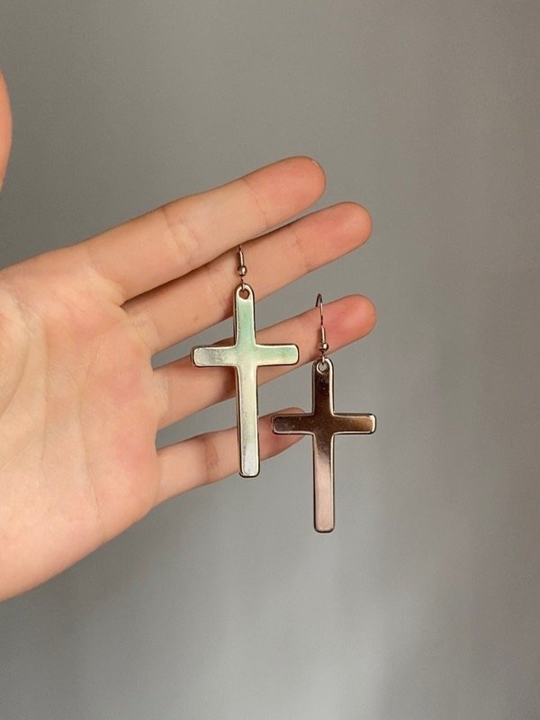 Par de aros de cruces grandotas de niquel.