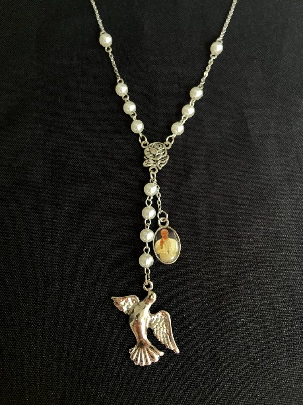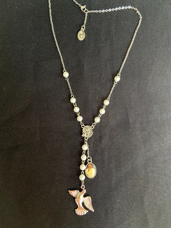 Cadenita de acero con perlitas de plástico y dijes de níquel