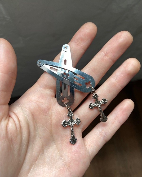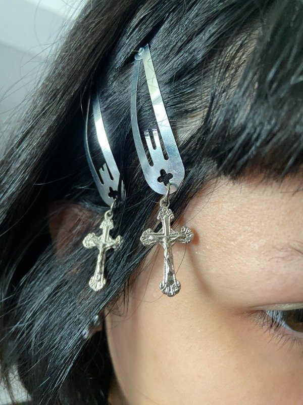 par de hebillas con dijes de cruz