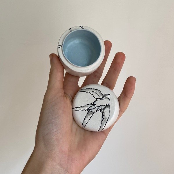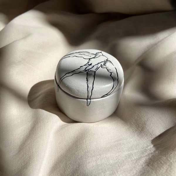 Hecho en arcilla de secado al aire, pintada con acrílicos y terminada con dos capas de barniz. Este tipo de piezas se hace una sola vez, es decir que son únicas.